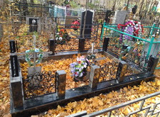 В этом заказе необходимо было изготовить и установить комбинированную ограду. Гранитные столбы, гранитная подложка и облицовка и металлические пролеты из кованных элементов. В дальнейшем необходимо будет поднять уровень пола до одного уровня с подложкой и установить памятники.